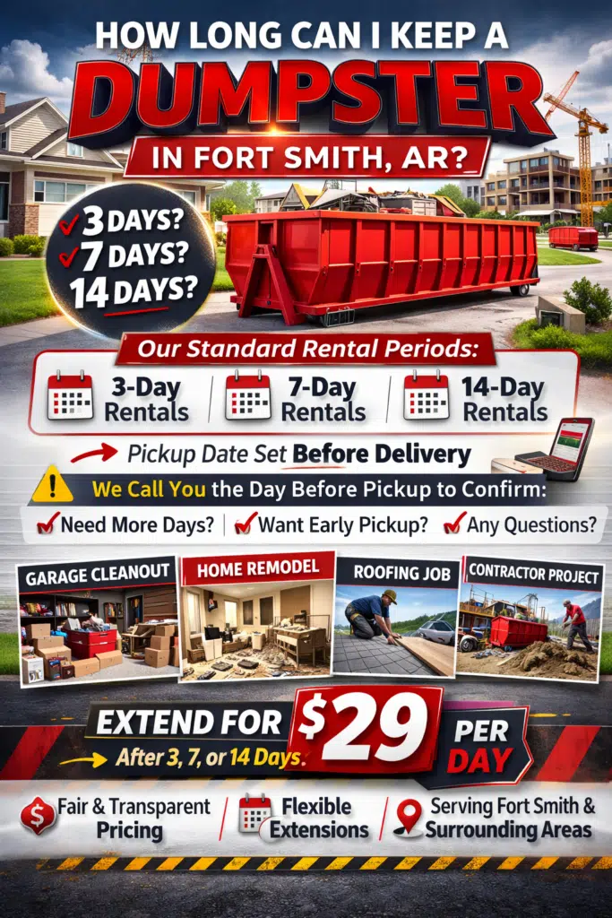 The most common confusion we see is customers assuming the dumpster can sit indefinitely without confirming a pickup schedule.